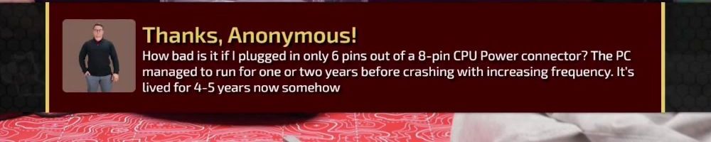 How bad is it if I plugged in only 6 pins out of a 8-pin CPU Power connector? The PC managed to run for one or two years before crashing with increasing frequency. It's lived for 4-5 years now somehow