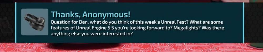 Question for Dan, what do you think of this week's Unreal Fest? What are some features of Unreal Engine 5.5 you're looking forward to? Megalights? Was there anything else you were interested in?