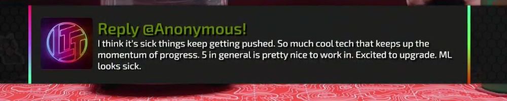 I think it's sick things keep getting pushed. So much cool tech that keeps up the momentum of progress. 5 in general is pretty nice to work in. Excited to upgrade. ML looks sick.