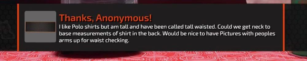 I like Polo shirts but am tall and have been called tall waisted. Could we get neck to base measurements of shirt in the back. Would be nice to have Pictures with peoples arms up for waist checking.