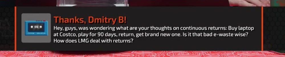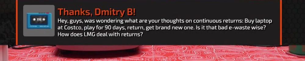 Hey, guys, was wondering what are your thoughts on continuous returns: Buy laptop at Costco, play for 90 days, return, get brand new one. Is it that bad e-waste wise? How does LMG deal with returns?