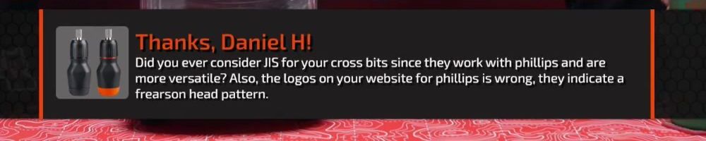Did you ever consider JIS for your cross bits since they work with phillips and are more versatile? Also, the logos on your website for phillips is wrong, they indicate a frearson head pattern.