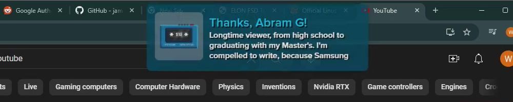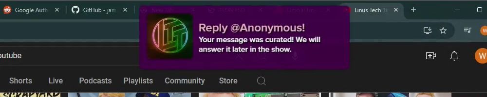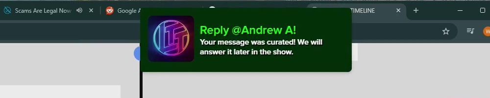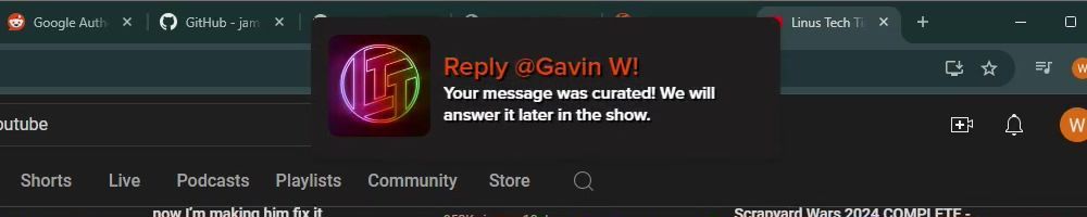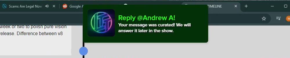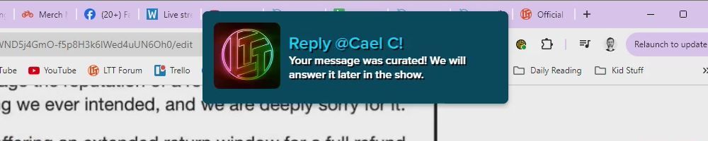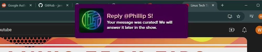 Hint: Use CTRL + F to search messages in this show, or use Whenplane's WAN Show Search tool to search for messages in all shows.