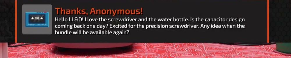 Hello LL&D! I love the screwdriver and the water bottle. Is the capacitor design coming back one day? Excited for the precision screwdriver. Any idea when the bundle will be available again?