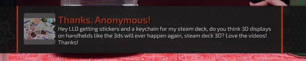 Hey LLD getting stickers and a keychain for my steam deck, do you think 3D displays on handhelds like the 3ds will ever happen again, steam deck 3D? Love the videos! Thanks!