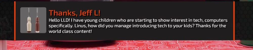 Hello LLD! I have young children who are starting to show interest in tech, computers specifically. Linus, how did you manage introducing tech to your kids? Thanks for the world class content!
