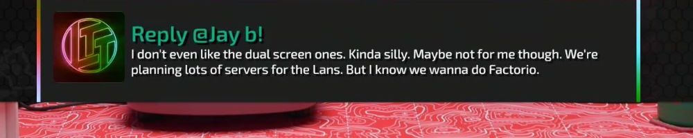 I don't even like the dual screen ones. Kinda silly. Maybe not for me though. We're planning lots of servers for the Lans. But I know we wanna do Factorio.