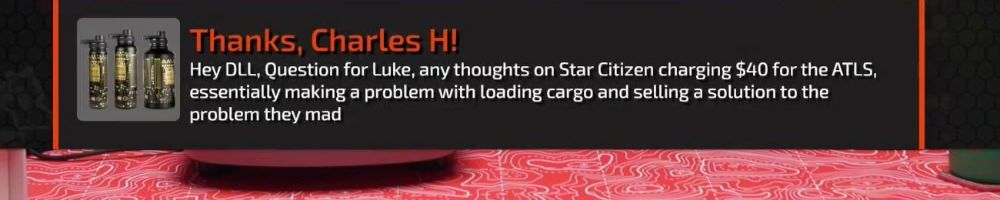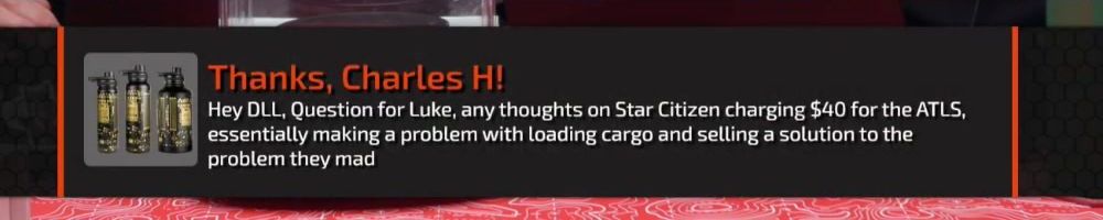 Hey DLL, Question for Luke, any thoughts on Star Citizen charging $40 for the ATLS, essentially making a problem with loading cargo and selling a solution to the problem they mad