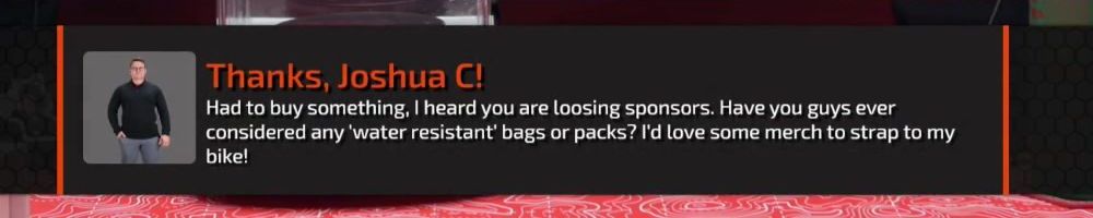 Had to buy something, I heard you are loosing sponsors. Have you guys ever considered any 'water resistant' bags or packs? I'd love some merch to strap to my bike!