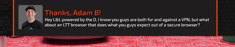Hey L&L powered by the D, I know you guys are both for and against a VPN, but what about an LTT browser that does what you guys expect out of a secure browser?