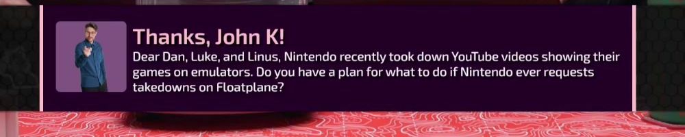 Dear Dan, Luke, and Linus, Nintendo recently took down YouTube videos showing their
