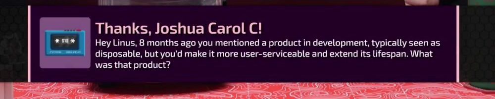 Hey Linus, 8 months ago you mentioned a product in development, typically seen as disposable, but you'd make it more user-serviceable and extend its lifespan. What was that product?