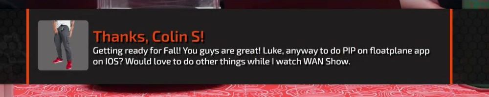 Getting ready for Fall! You guys are great! Luke, anyway to do PIP on floatplane app on 10S? Would love to do other things while I watch WAN Show.
