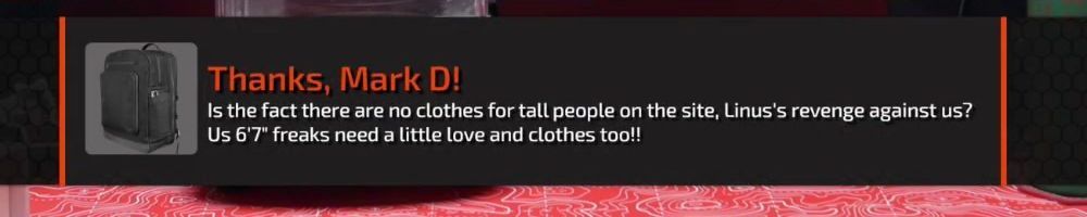Is the fact there are no clothes for tall people on the site, Linus's revenge against us?