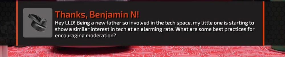 Hey LLD! Being a new father so involved in the tech space, my little one is starting to show a similar interest in tech at an alarming rate. What are some best practices for encouraging moderation?
