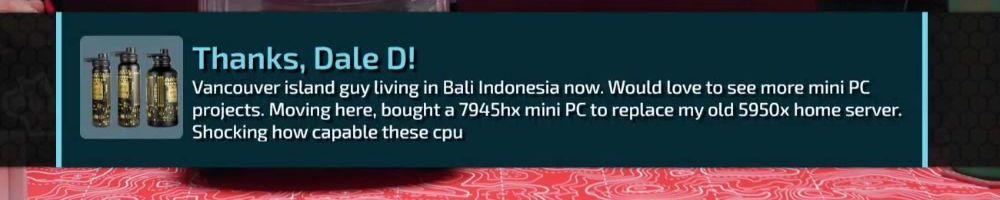 Vancouver island guy living in Bali Indonesia now. Would love to see more mini PC projects. Moving here, bought a 7945hx mini PC to replace my old 5950x home server. Shocking how capable these cpu