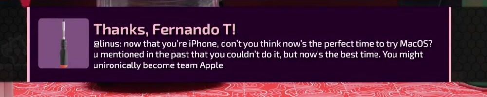 @linus: now that you're iPhone, don't you think now's the perfect time to try MacOS? u mentioned in the past that you couldn't do it, but now's the best time. You might unironically become team Apple