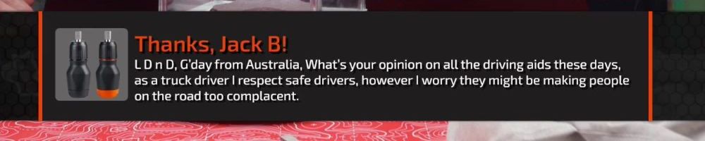 L D n D, G'day from Australia, What's your opinion on all the driving aids these days, as a truck driver I respect safe drivers, however I worry they might be making people on the road too complacent.