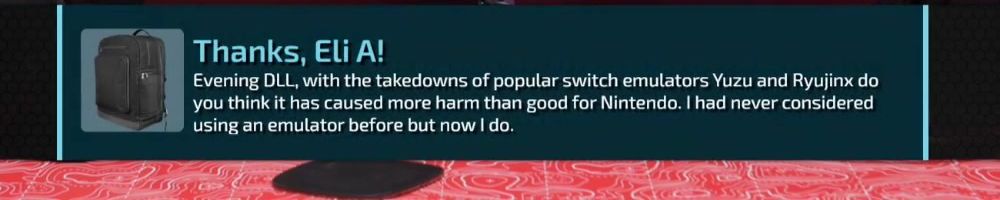 Thanks, Eli A! Evening DLL, with the takedowns of popular switch emulators Yuzu and Ryujinx do you think it has caused more harm than good for Nintendo. I had never considered using an emulator before but now I do.