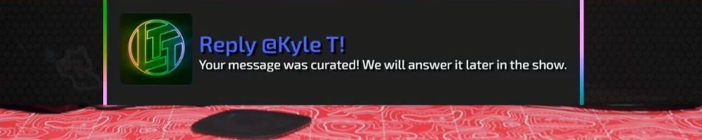 Reply @Kyle T! Your message was curated! We will answer it later in the show.