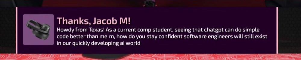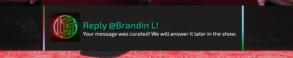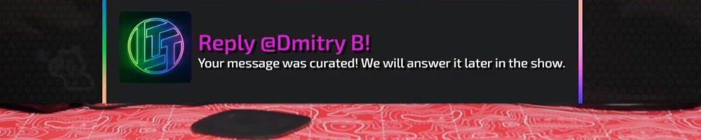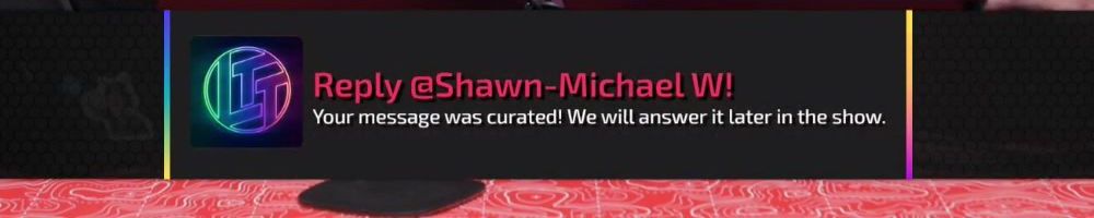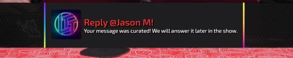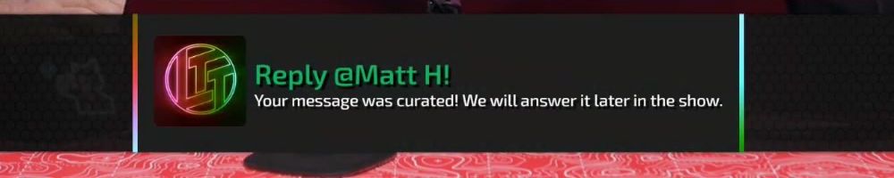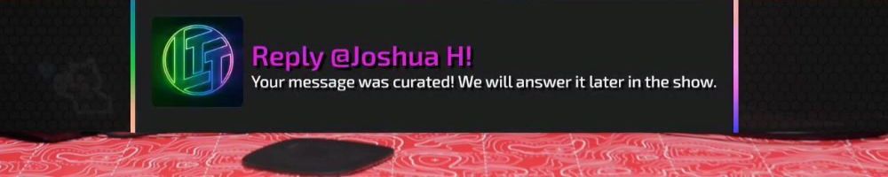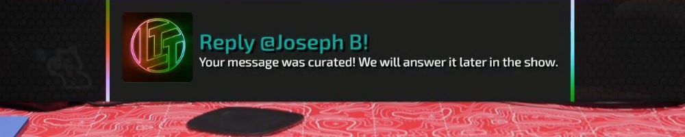 Reply @Joshua H! Your message was curated! We will answer it later in the show.