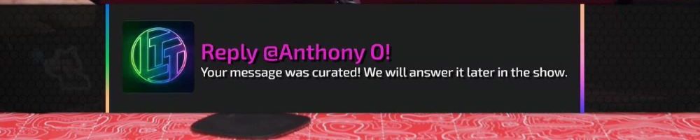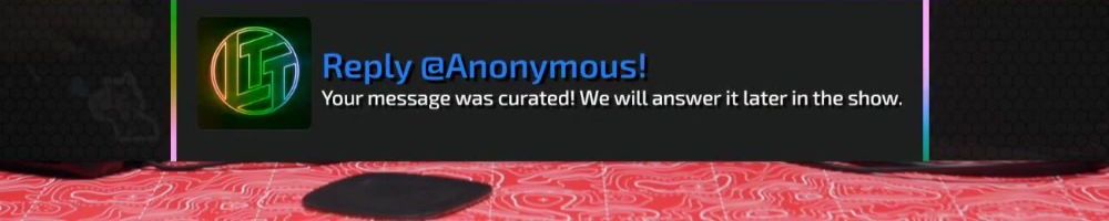 Reply @Anonymous! Your message was curated! We will answer it later in the show.