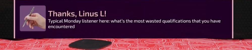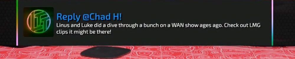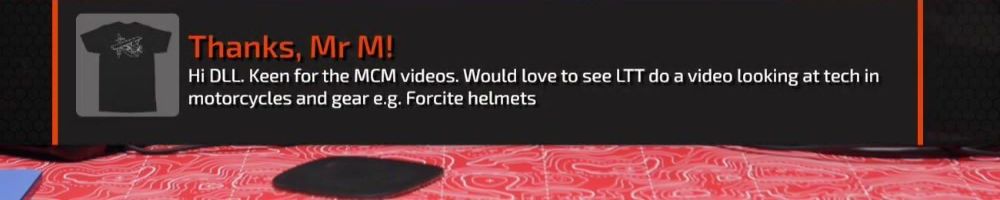 Thanks, Mr M! Hi DLL. Keen for the MCM videos. Would love to see LTT do a video looking at tech in motorcycles and gear e.g. Forcite helmets