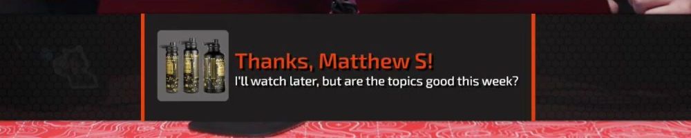 Reply @Matt H! Your message was curated! We will answer it later in the show.