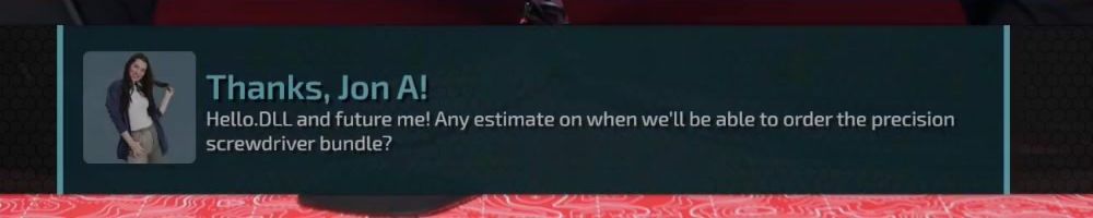 Thanks, Jon A! Hello.DLL and future me! Any estimate on when we'll be able to order the precision screwdriver bundle?