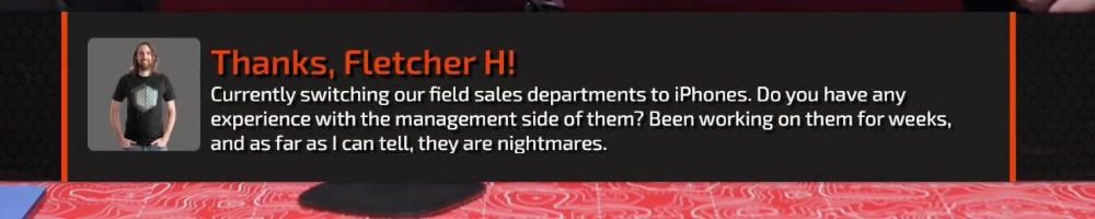 Thanks, Fletcher H! Currently switching our field sales departments to iPhones. Do you have any experience with the management side of them? Been working on them for weeks, and as far as I can tell, they are nightmares.