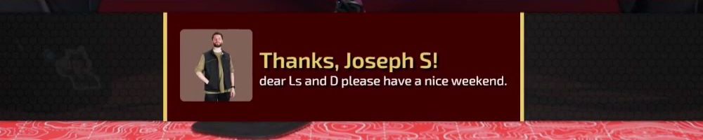Thanks, Joseph S! dear Ls and D please have a nice weekend.