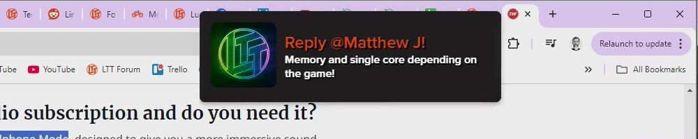 Reply @Matthew J! Memory and single core depending on the game!