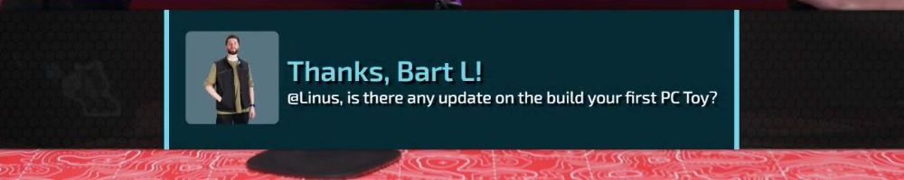 Thanks, Bart L! @Linus, is there any update on the build your first PC Toy?