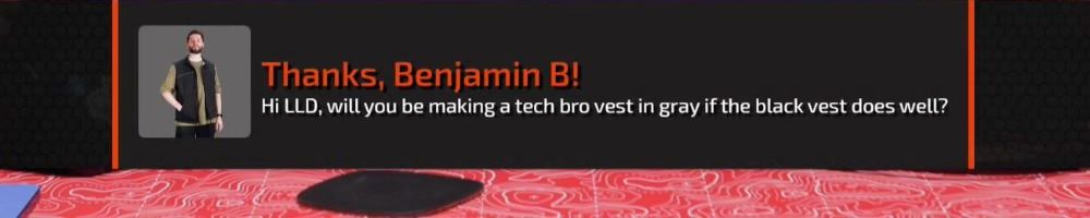Thanks, Benjamin B! Hi LLD, will you be making a tech bro vest in gray if the black vest does well?