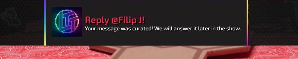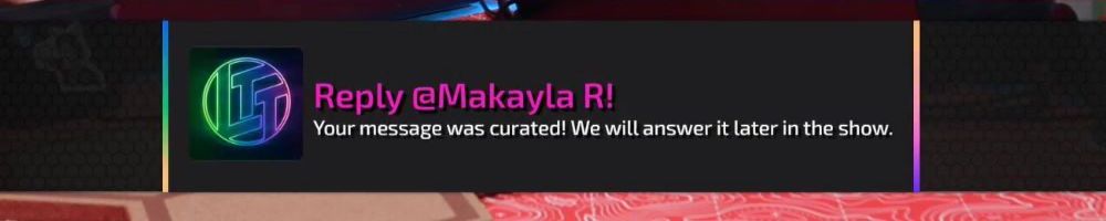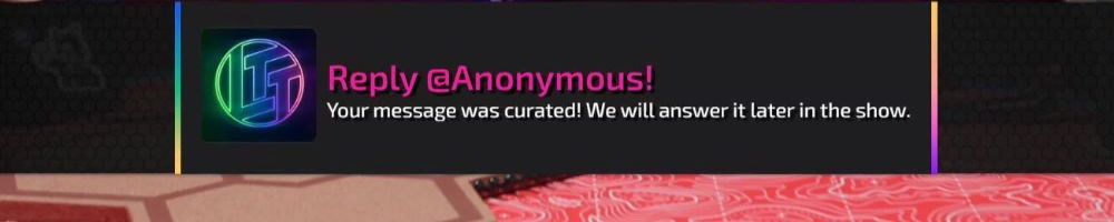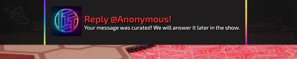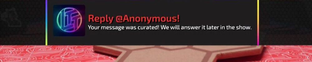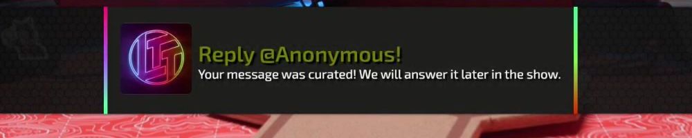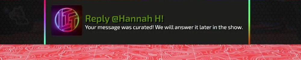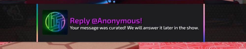 Reply @Anonymous! Your message was curated! We will answer it later in the show.