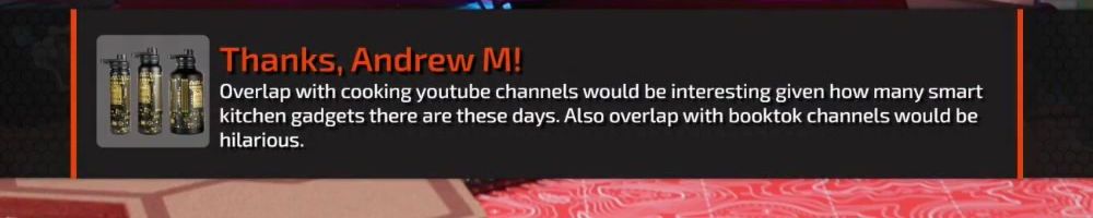 Thanks, Andrew M! Overlap with cooking youtube channels would be interesting given how many smart kitchen gadgets there are these days. Also overlap with booktok channels would be hilarious.