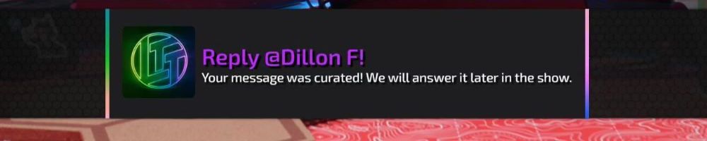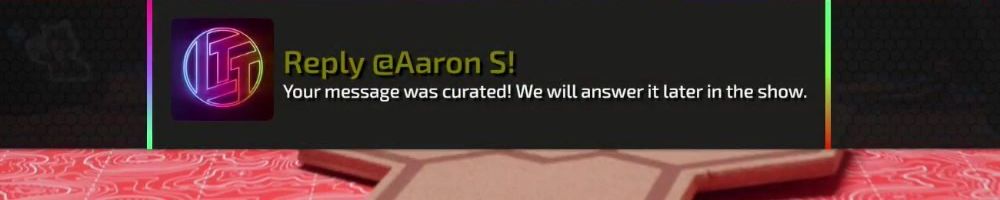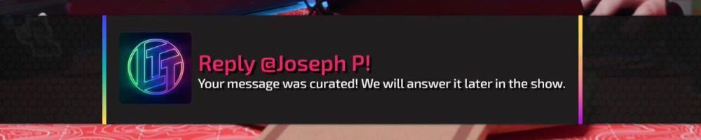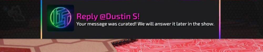 Reply @Dustin S! Your message was curated! We will answer it later in the show.