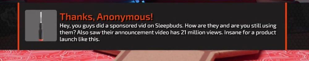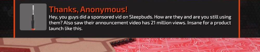 Thanks, Anonymous! Hey, you guys did a sponsored vid on Sleepbuds. How are they and are you still using them? Also saw their announcement video has 21 million views. Insane for a product launch like this.