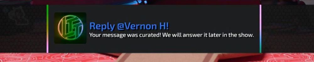 Reply @Vernon H! Your message was curated! We will answer it later in the show.