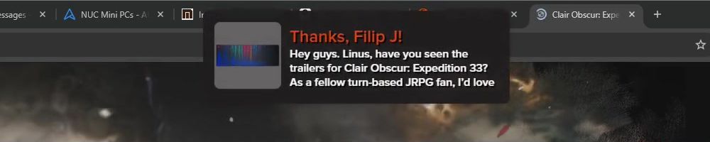 Thanks, Filip J! Hey guys. Linus, have you seen the trailers for Clair Obscur: Expedition 33? As a fellow turn-based JRPG fan, I'd love to hear your thoughts. I'm super excited for it.