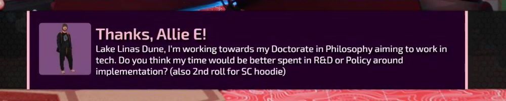 Reply @Allie E! Your message was curated! We will answer it later in the show.