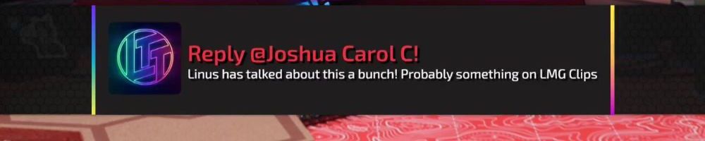 Reply @Joshua Carol C! Linus has talked about this a bunch! Probably something on LMG Clips