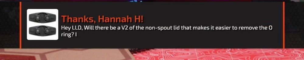 Thanks, Hannah H! Hey LLD, Will there be a V2 of the non-spout lid that makes it easier to remove the O ring? !