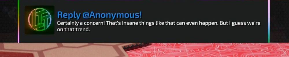 Reply @Anonymous! Certainly a concern! That's insane things like that can even happen. But I guess we're on that trend.