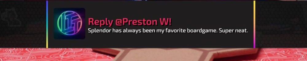 Reply @Preston W! Splendor has always been my favorite boardgame. Super neat.