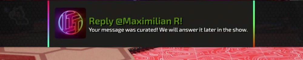 Reply @Maximilian R! Your message was curated! We will answer it later in the show.