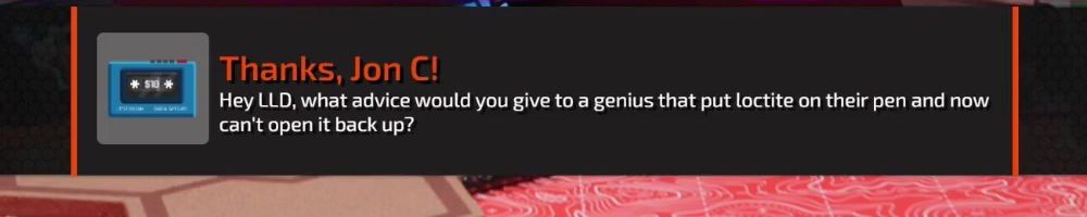 Thanks, Jon C! Hey LLD, what advice would you give to a genius that put loctite on their pen and now can't open it back up?