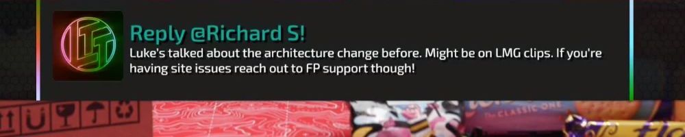Reply @Richard S! Luke's talked about the architecture change before. Might be on LMG clips. If you're having site issues reach out to FP support though!