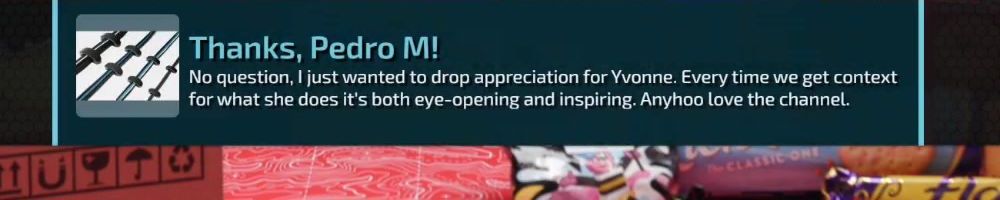 Thanks, Pedro M! No question, I just wanted to drop appreciation for Yvonne. Every time we get context for what she does it's both eye-opening and inspiring. Anyhoo love the channel.