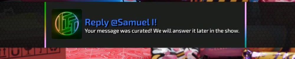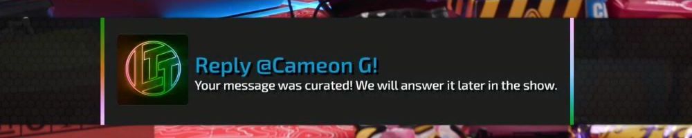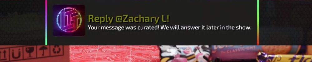 Reply @Zachary L! Your message was curated! We will answer it later in the show.